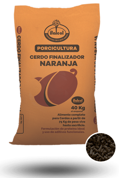 Es un alimento completo diseñado para ser suministrado a cerdos en ceba a partir de los 75 kg de peso vivo, hasta faltando 3 semanas para el sacrificio (en las últimas 3 semanas se suministra cerdo Finalizador Naranja).